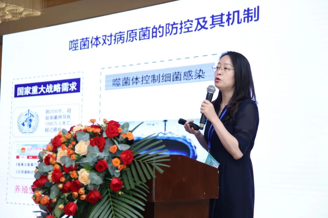 會議報告精彩紛呈,因時間所限,每位報告嘉賓的分享時間都是25分鐘,在主持人曹永長教授(中山大學(xué))風(fēng)趣的話語中,上午的報告迎來了尾聲。來自南京農(nóng)業(yè)大學(xué)的湯芳教授作了《噬菌體對致病性大腸桿菌的防控及其機(jī)制》的報告。