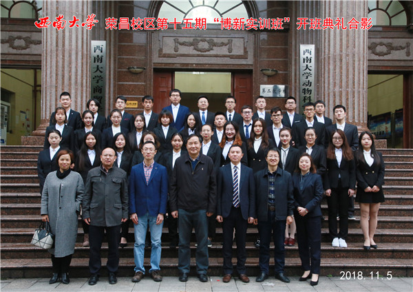 2018年11月5日,西南大學(xué)第十五期“博新實(shí)訓(xùn)”班開班典禮暨開班第一講在榮昌校區(qū)2309會(huì)議室隆重舉行,西南大學(xué)榮昌校區(qū)管委會(huì)主任左福元、成都思來生物科技有限公司董事長王峰、西南大學(xué)榮昌校區(qū)管委會(huì)副主任趙智華、西南大學(xué)榮昌校區(qū)教務(wù)主任曾仁權(quán)等領(lǐng)導(dǎo)出席開班典禮。