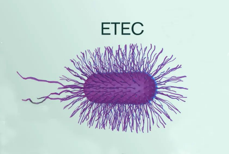 ETEC 導致腹瀉的流程大致分為 2 個過程 第一步 ?  ETEC 的菌毛(黏附素)可識別腸上皮細胞受體,并黏附到腸上皮細胞上; 第二步 ?  ETEC 生長過程中產(chǎn)生腸毒素,特別是熱敏性腸毒素,會迅速引發(fā)分泌性腹瀉。