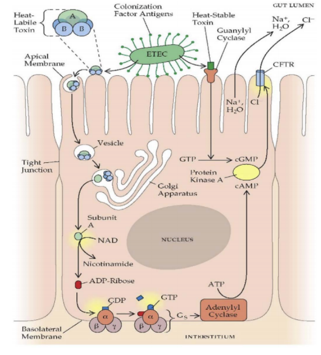 ?ADP-核糖基化抑制作用: 原花青素可抑制霍亂毒素或熱敏腸毒素 A 亞基的 ADP- 核糖基化轉(zhuǎn)移酶活性,阻斷 NAD 轉(zhuǎn)化成 ADP-R,抑制后續(xù)引發(fā)的腹瀉效應(yīng),即原花青素抑制了 ADP- 核糖基化作用。也就是說,A亞基相當(dāng)于產(chǎn)腸毒素細(xì)菌引發(fā)分泌性腹瀉的“啟動器”,而原花青素可以在它剛啟動之初就“失靈”。